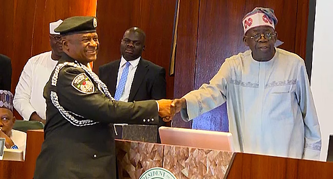 President Bola Tinubu on Wednesday swore in Olatunji Disu as the Inspector-General of Police (IGP).